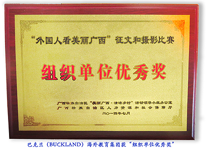 今年,广西壮族自治区开展了“美丽广西,清洁乡村”活动,巴克兰的“老外”们拿起相机、敲击键盘,积极参加了这项活动中的“外国人看美丽广西”征文和摄影比赛,来自英国的Julie Elizabeth Smyth 等8位外国文教专家的图文作品获得广西自治区外国专家局奖励,巴克兰被评为该项活动的“组织单位优秀奖”。□