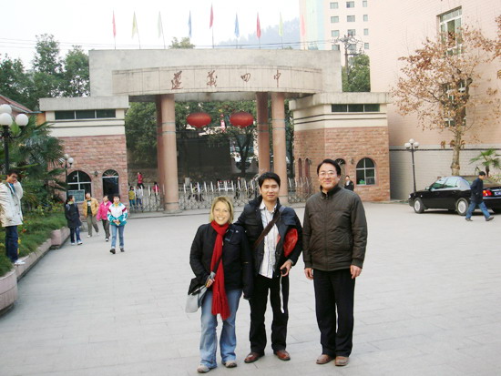 外教来到革命历史名城非常兴奋,高兴地在遵义四中门前留影