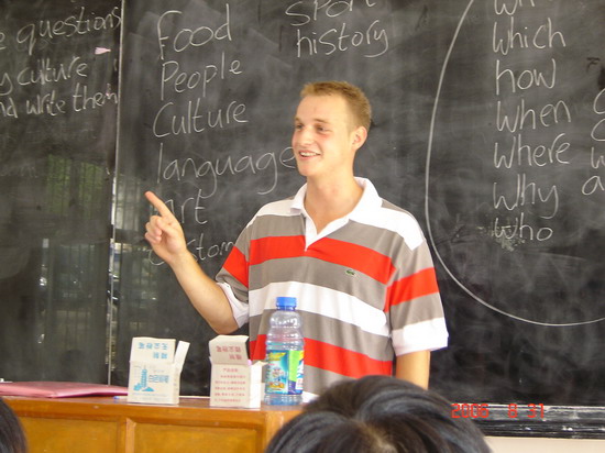 在培训地借班试教,这位外教似乎胸有成竹……