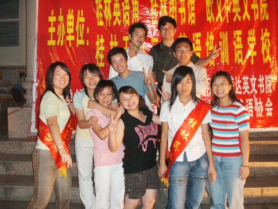 桂林市“欧文杯英语演讲比赛”上,与小选手们愉快地合影。