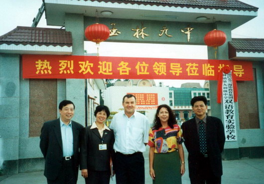 欧文先生与双语教育研究会副会长候玉林先生视察广西玉林九中双语教育实验学校。 |